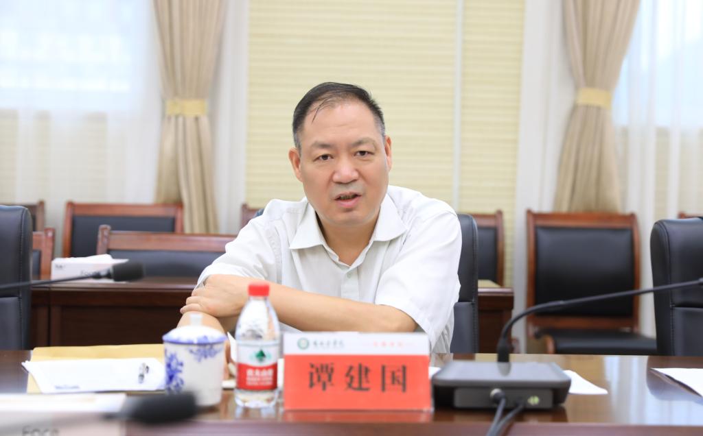 6月14日,桂林市政协副主席、民盟桂林市委主委谭建国一行来我校调研高校基层组织建设情况。校党委书记张志勇出席会议。民盟市委专职副主委胡静,民盟市委秘书长、组织部部长张岳陪同调研。校党委统战部、组织部及附属医院党委等部门负责人参加会议。