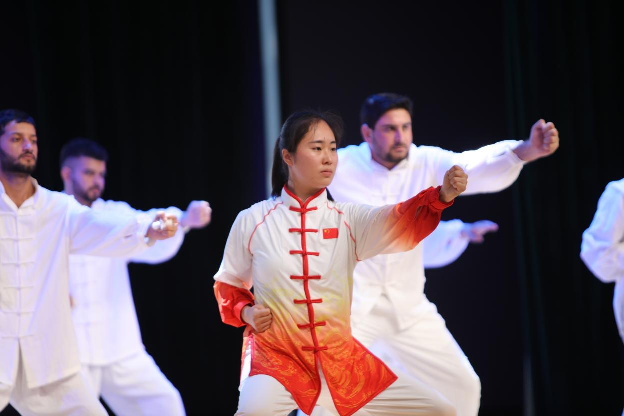 体育部老师与留学生表演八段锦精彩瞬间