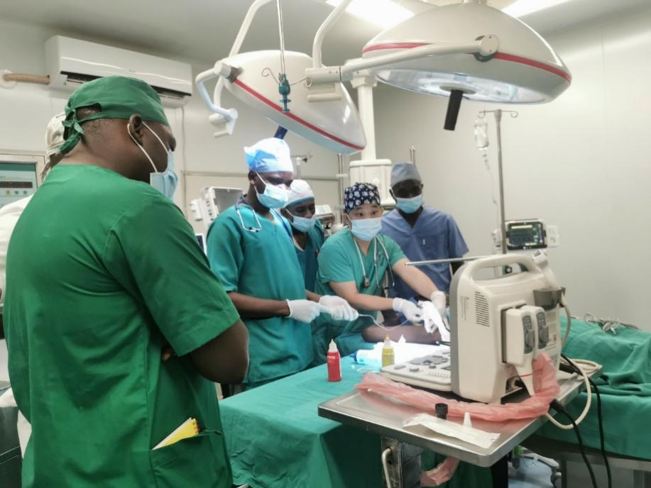 联合医疗队妇科冯奕医生和卢文君在急诊查房