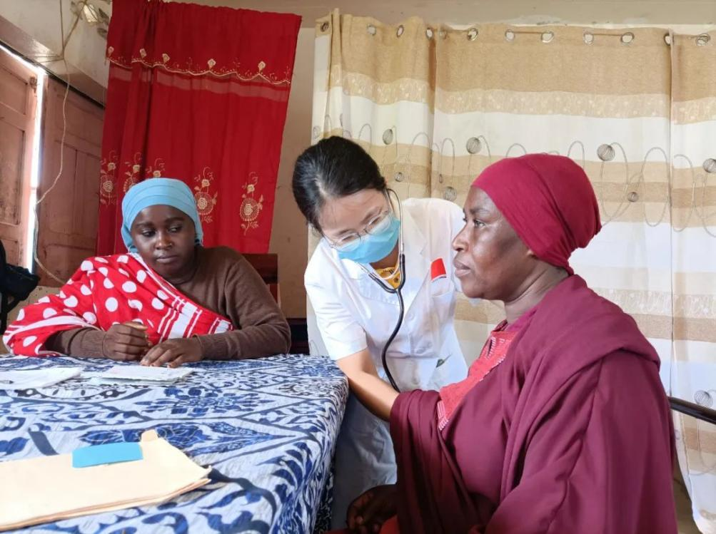 卢文君在科摩罗莫埃利岛义诊时给病人查体