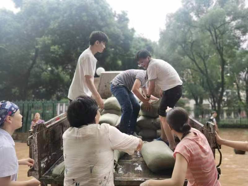 受洪水影响,我校东城校区大面积积水,道路受阻,加上停水停电,部分师生被困。校党委书记张志勇、副院长覃克强、总会计师周国增等在家校领导身先士卒,靠前指挥,到东城校区洪水现场与党员干部和师生一道积极抗洪;我校党办院办、后勤处、学工处、保卫处、基建处等部门及东城校区各二级院系“闻汛而动”,积极联合各方力量对东城校区的汛情进行援助,辅导员和教师们第一时间有序引导,确保学生安全;学校积极调配车辆、饮食、充电宝等各类物资,保证东城校区在校师生的基本供给。19日晚,正值洪水高峰期,我校教师马生元、罗津、付俊、谢白弟等和护理学院的学生志愿者李好用皮筏艇持续送餐到每个宿舍,直到深夜。师生们众志成城,齐心抗洪,搬运沙袋抵御洪水,接力转运低楼层的物资、教材、图书档案、病案等,最终平安度过汛情。20日下午,东城校区积水慢慢减退,师生们积极进行清淤,复学复工。