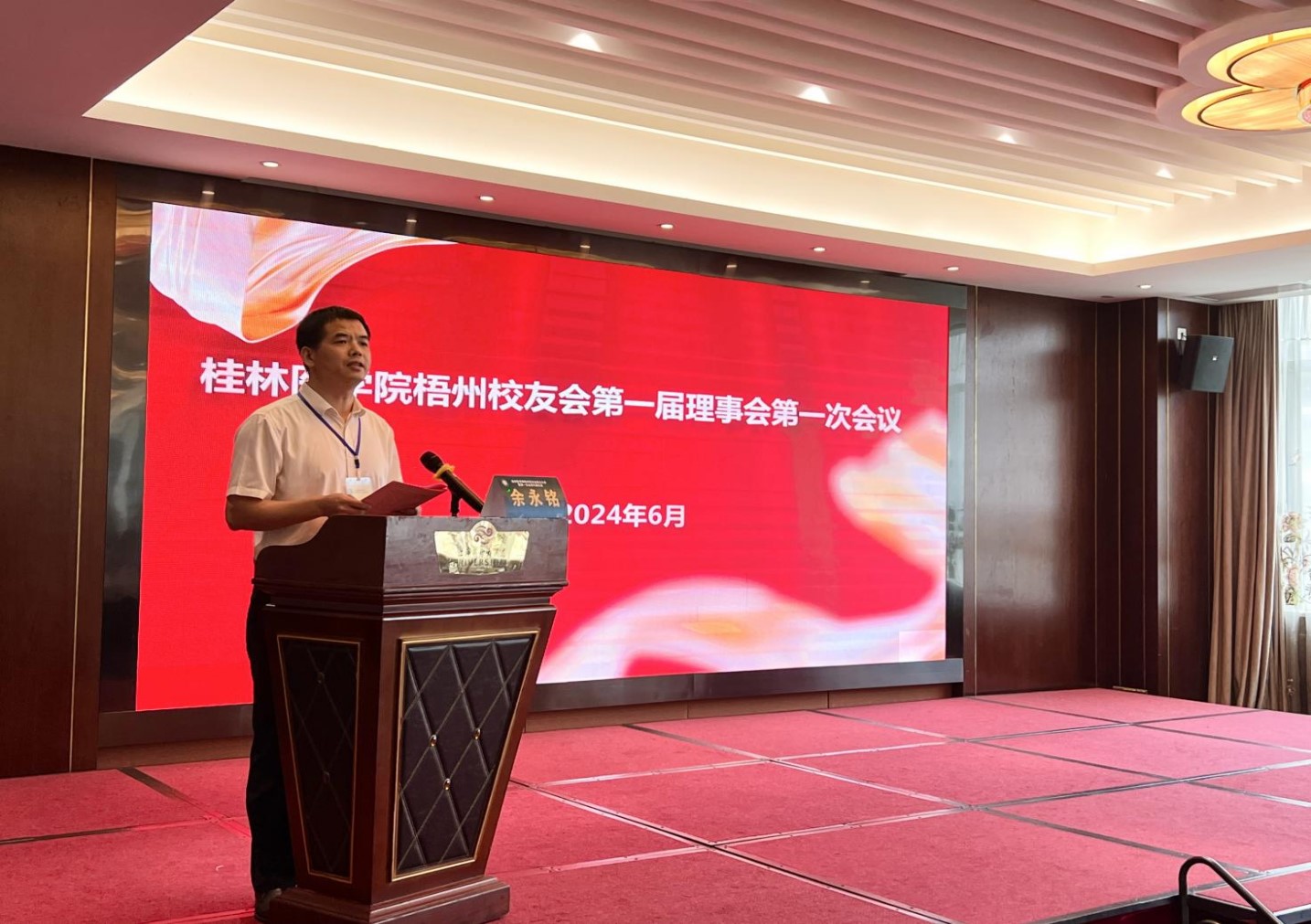 6月23日下午,桂林医学院梧州校友会成立大会暨第一次会员代表大会在梧州市江滨国际大酒店顺利召开。校党委常委、副院长、桂林医学院校友会常务副会长陈健,梧州市卫生健康委员会党组书记、主任宁金沛出席会议。梧州市各县市区、各单位的校友代表近130人欢聚一堂,共同见证这一重要时刻。大会由梧州市红十字会医院党委副书记、院长余永铭主持。