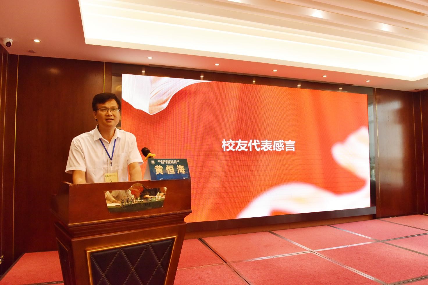 1991级校友黄恒海作为校友代表上台发言。他表示,自己的成长和成绩的取得,离不开母校的培养、教导和校友们的大力支持。正是因为大家的共同努力,桂林医学院梧州校友会的平台才能顺利搭建,不断壮大。桂林医学院梧州校友会会长梁斗进行表态发言,将积极搭建校友之间的合作平台,为校友们提供宝贵的学习和交流机会,积极促进校友与母校互动,传承母校精神,延续母校文化。