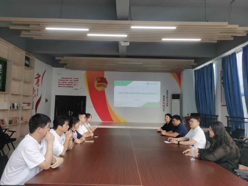 6月28日下午,我校在临桂校区大学生活动中心209会议室举行2024年大学生西部计划志愿者欢送会,校团委、相关二级学院(系)负责人,辅导员代表及西部计划志愿者参加会议。