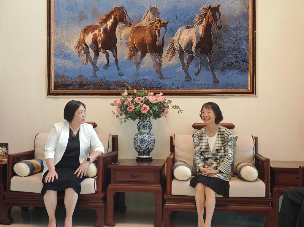 在泰国访问期间,代表团还拜访了中华人民共和国驻宋卡总领事馆。吴冬梅总领事对代表团表示热烈欢迎,并详细介绍了泰南地区的经济社会发展情况,表达了对我校与泰南高校合作项目的全力支持与期待,共同为推动构建中泰命运共同体贡献力量。曾小云介绍了学校的发展历程和此行目的,强调了广西与泰国在医药研究领域合作的天然优势,希望在总领事馆的支持下加强与泰南高校在学科交流、科学研究和人才培养方面的合作。