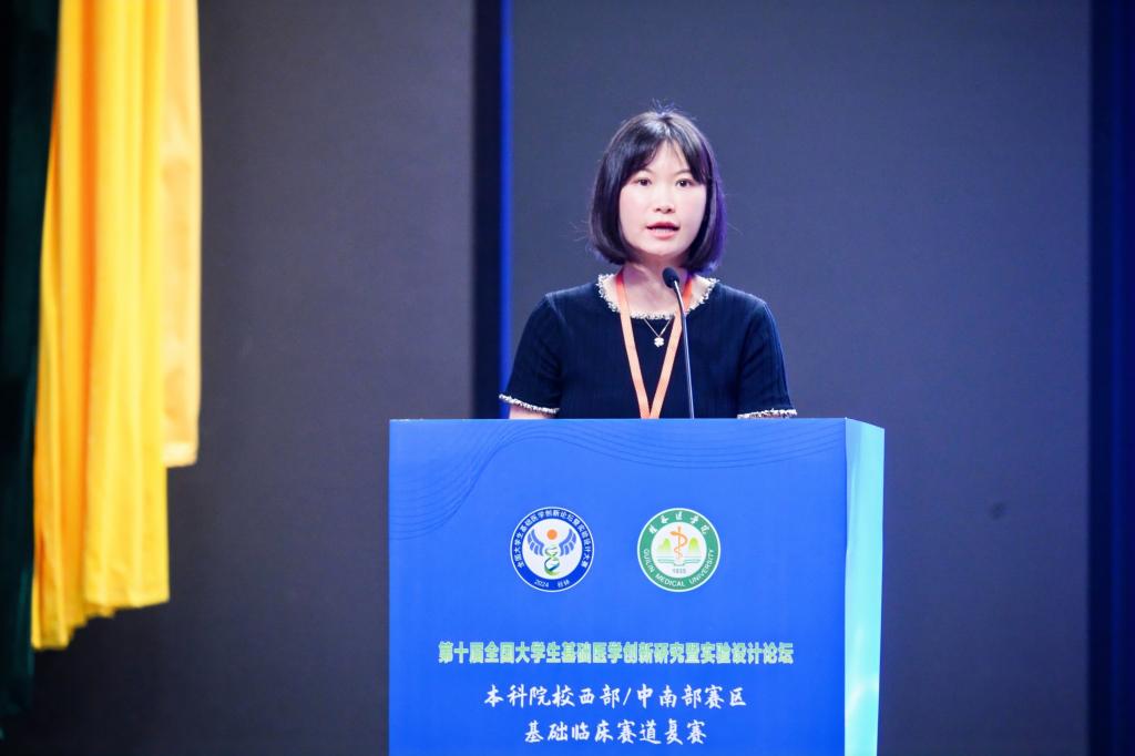 校党委常委、副院长陈旭出席闭幕式并致辞。她对比赛的成功举办和获奖学生表示热烈祝贺,对各位领导、专家、参赛师生的参与和支持表示衷心感谢。她表示,大赛为拓展学术视野、促进创新能力、增进交流互鉴提供了重要平台。她表示,学校将以此次大赛为契机,进一步加强与兄弟院校的交流合作,不断完善教育教学体系,提高人才培养质量,为基础医学的高质量发展做出更大贡献。