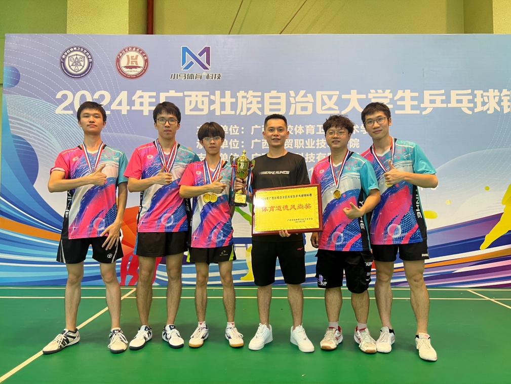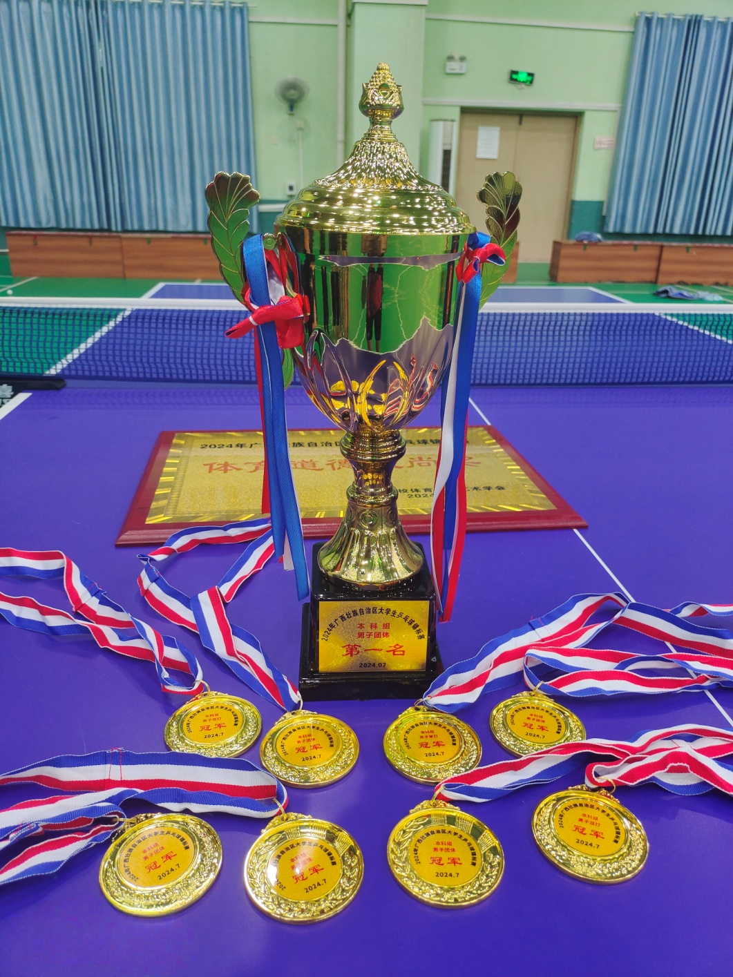 校乒乓球队参加了在广西经贸职业技术学院举行的“2024年广西大学生乒乓球锦标赛”,经过6天的激烈角逐,我校代表队包揽男子团体冠军,男子双打冠军,男子单打冠军,取得了校乒乓球队历史最好成绩。