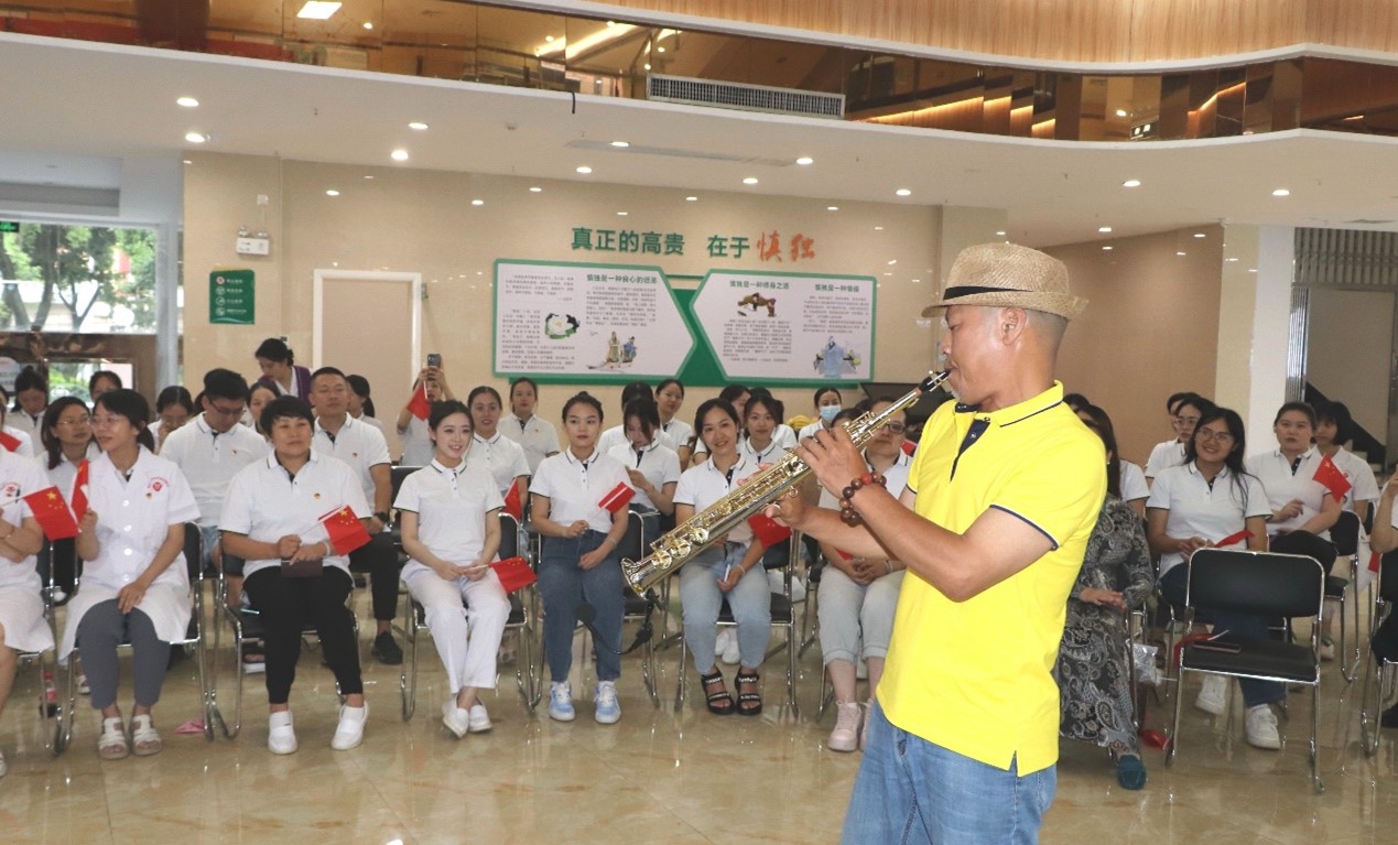 音乐是最好的疗养师。为了营造轻松愉悦的节日氛围,医院邀请了专业萨克斯演奏家为我们现场演奏《春风》《秋恋》《偏偏喜欢你》等经典曲目。音乐如水,流淌在每个人的心里,人们感受到了春天的生机勃勃和秋天的温情脉脉,轻盈,灵动,心旷神怡。