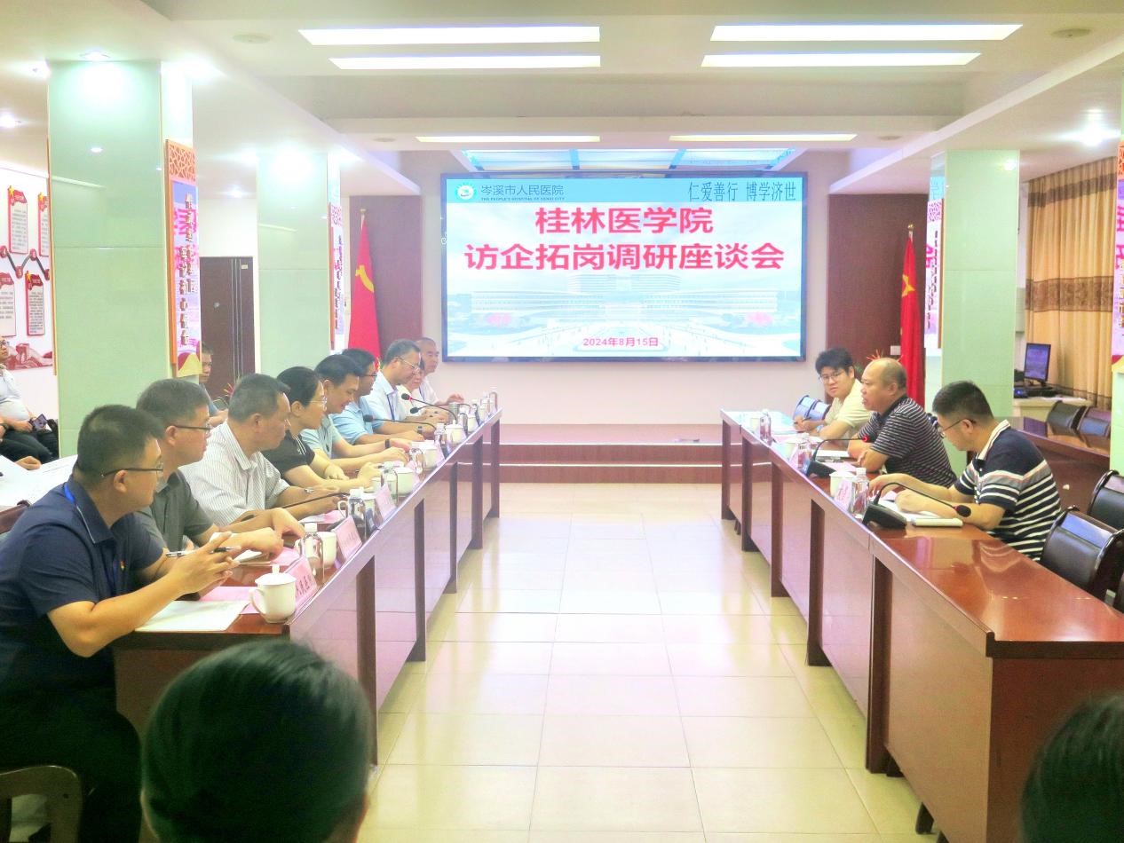 为进一步深化实施“访企拓岗促就业”专项行动,更深入地了解用人单位对人才的具体需求,积极拓展毕业生的就业渠道,8月15日下午,校党委常委、副院长覃克强带领附属医院(临床医学院)副院长和学工办老师,到岑溪市医疗卫生系统开展“访企拓岗”专题调研与座谈活动。岑溪市领导林晓通,岑溪市卫生健康局、岑溪市人民医院、岑溪市中医医院、岑溪市妇幼保健院主要负责人以及校友代表参加调研座谈会。
