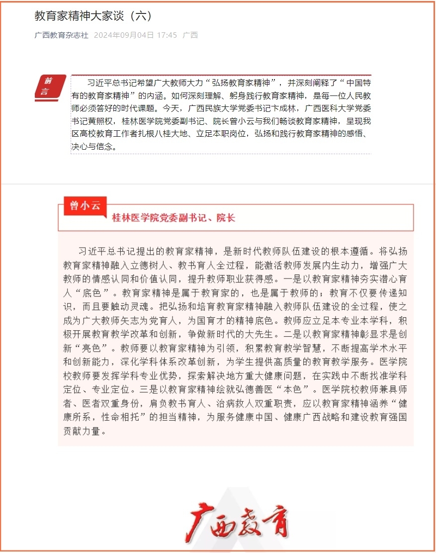 桂林医学院党委副书记、院长曾小云谈教育家精神