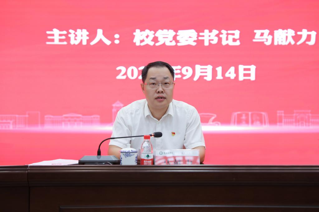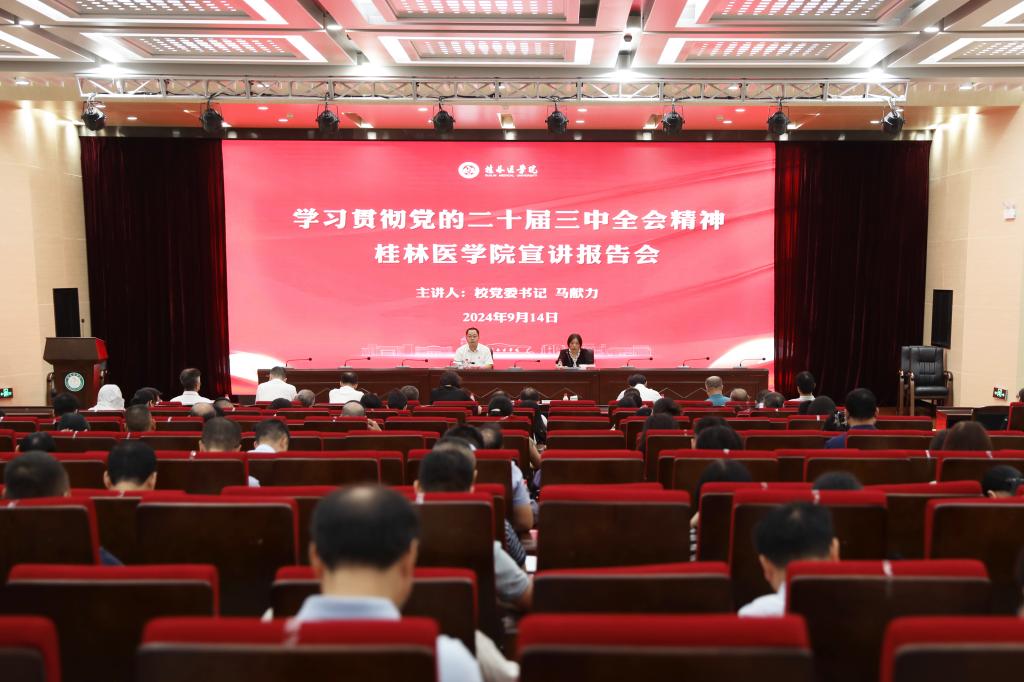 9月14日上午,我校在临桂校区教学北楼多功能报告厅举行学习贯彻党的二十届三中全会精神宣讲报告会。学校党委书记马献力作宣讲报告。学校党委副书记、院长曾小云主持报告会。