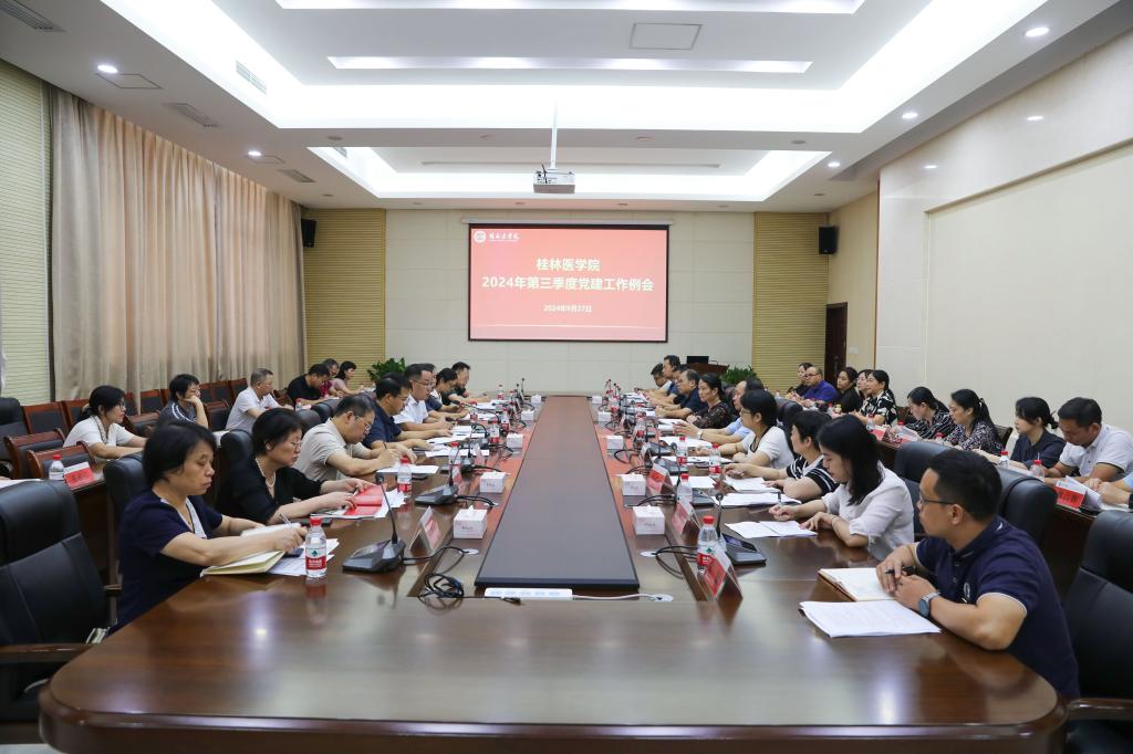 9月27日下午,我校在临桂校区明德楼502会议室召开2024年第三季度党建工作例会,校党委书记马献力出席会议并讲话,校党委有关职能部门和各二级党委负责人,以及直属附属医院组织科负责人和各二级党委专兼职组织员参加会议。