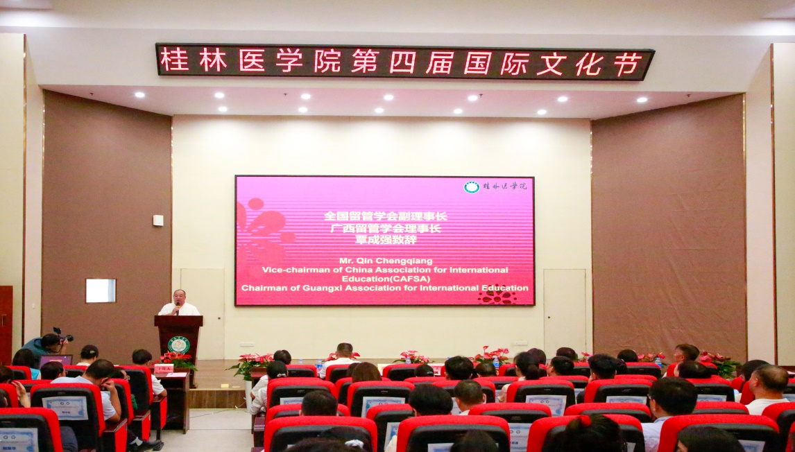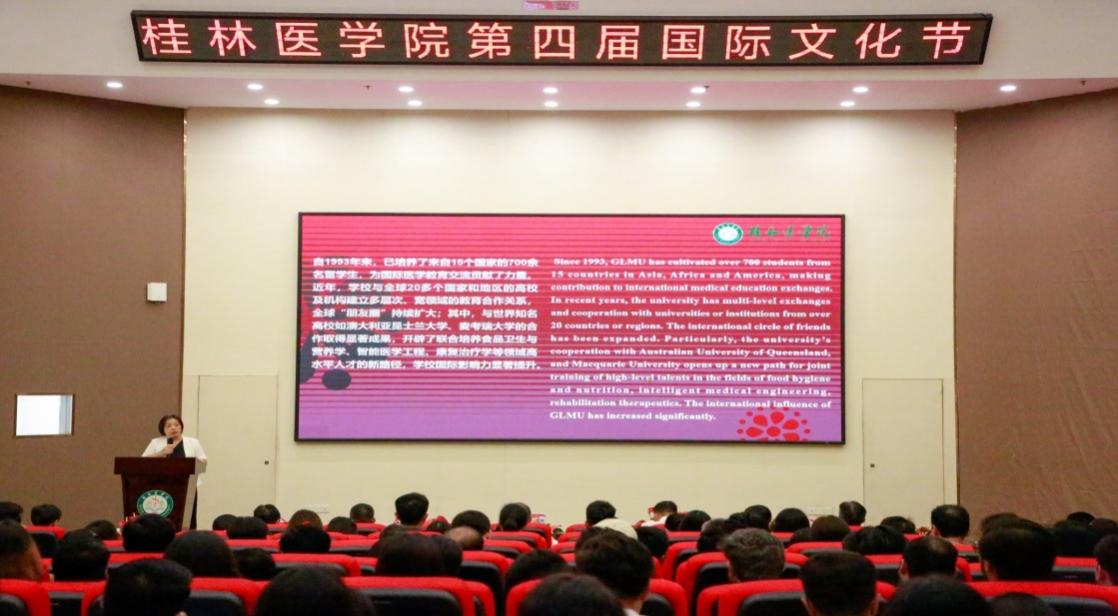 9月29日,以“相聚多彩桂医 品鉴文化之美”为主题的桂林医学院第四届国际文化节在我校国际教育交流中心开幕。我校党委副书记、院长曾小云,桂林市委常委、统战部部长蒋育亮,校党委常委、副院长李清华,全国留管学会副理事长、广西留管学会理事长覃成强,桂林市外事办公室副主任周绍剑,桂林市中医医院党委书记唐刚健,有关兄弟院校代表,学校各职能部门及二级学院负责人,以及我校师生代表参与了此次盛会。开幕式由李清华主持。