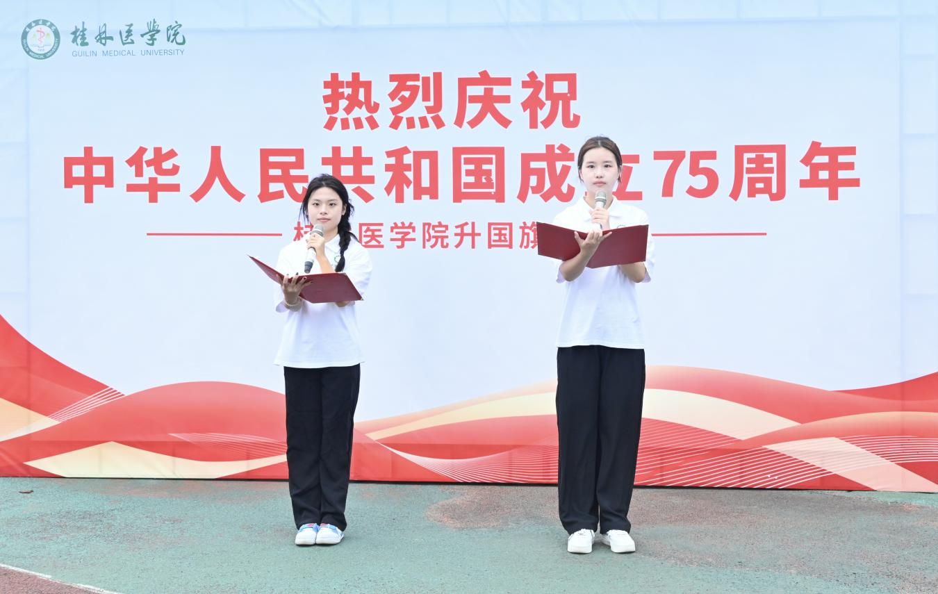 鲜艳的五星红旗在庄严的国歌声中冉冉升起,全体师生肃立,怀着崇高敬意向国旗行注目礼。五星红旗迎风飘扬,桂医青年在国旗下庄严宣誓:“我志愿献身医学,热爱祖国,忠于人民,救死扶伤,不辞艰辛,为人类身心健康奋斗终生。”随后,学生代表以“高擎理想的旗帜,燃烧信念的火炬”为主题进行了国旗下的演讲,用无数青春的榜样激励同学们以实现中华民族伟大复兴为己任,以更加坚定的决心意志和强烈的使命担当努力把青春华章写在祖国大地上。