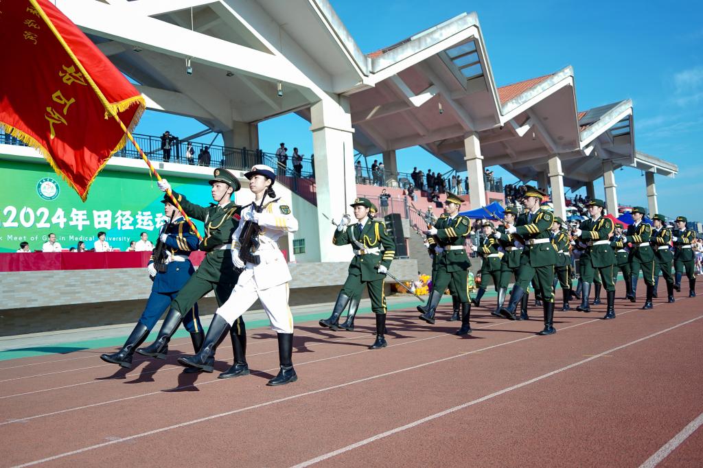 开幕式上,24支来自不同院系师生组成的运动员代表方阵,踏着整齐的步伐昂首阔步依次入场,展示了桂医师生特有的蓬勃朝气。