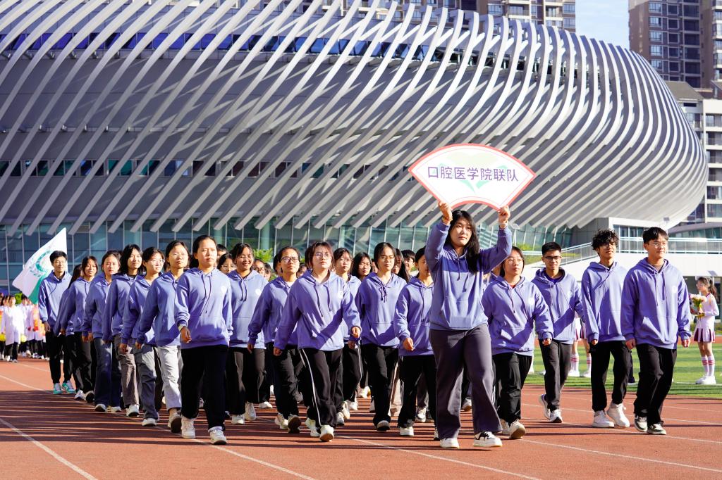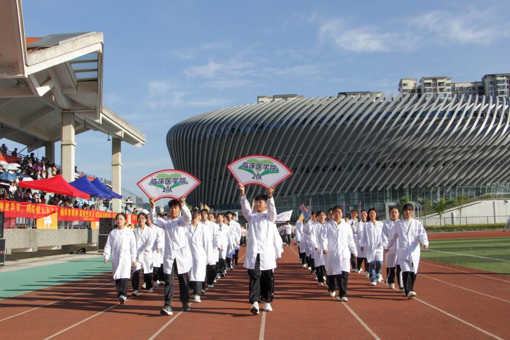 健青春之体,担强国之任。随着哨声响起,校领导们带队绕场领跑,运动员和各院系师生紧随其后,全体桂医人正以奔跑的速度,意气风发、精神抖擞,迈进新征程。