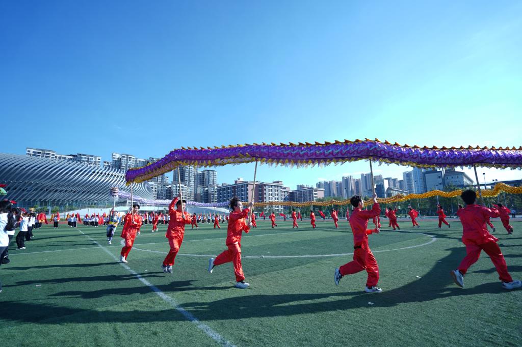 梦想的炙热,点燃初秋的校园。开幕式表演中,校龙狮队带来的《祥瑞同呈》,留学生表演的健身气功《八段锦》,学生团体操表演的《点亮未来》等精彩节目,将会场气氛推向高潮。