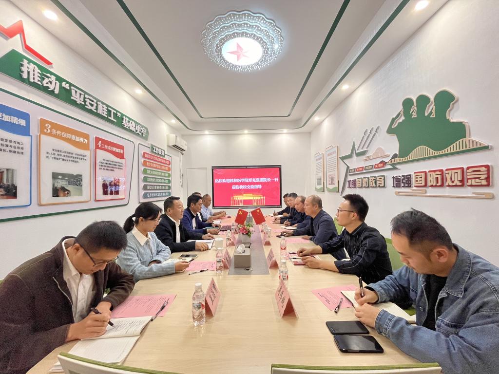10月24日下午,校党委常委、副院长覃克强带领武装保卫、学工、信息中心一行赴桂林理工大学雁山校区就学校平安校园建设、国防教育工作和安全教育基地建设开展调研。桂林理工大学党委常委、副校长罗盛锋热情接待了覃克强一行。