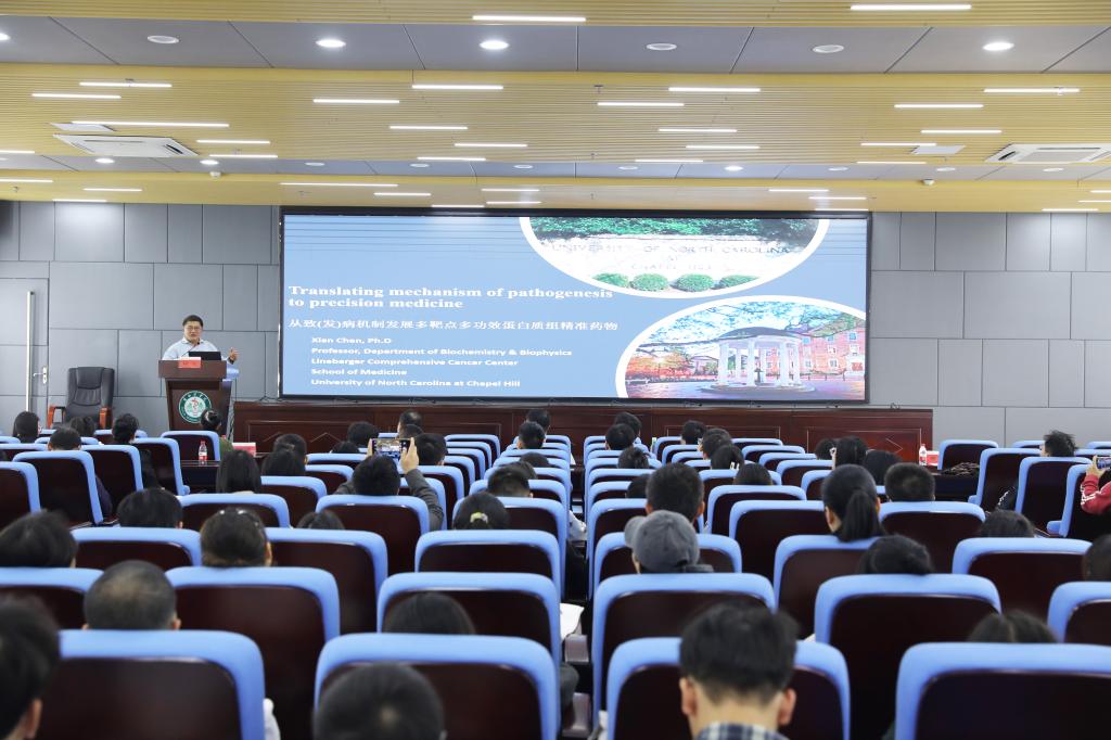 10月31日,2024年桂林医学院科技活动月系列活动——“八桂科技讲坛”在科学实验中心学术报告厅举行。美国北卡罗来纳大学教堂山分校(UNC-Chapel Hill)医学院生物化学和生物物理系陈先教授应邀做学术报告。学校党委书记马献力,学校党委常委、副院长陈健出席活动。学校相关科研人员近200人到场交流。活动由学校科学实验中心主任主持。