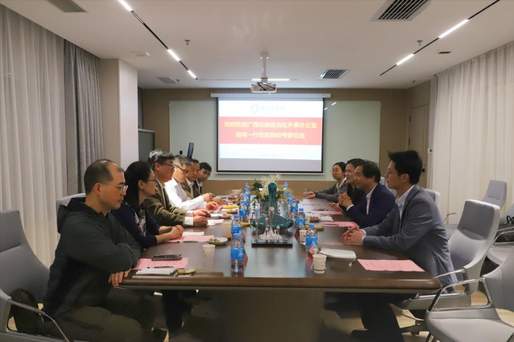 11月7日下午,自治区外事办公室副主任宋海军一行到我校调研国际化办学有关情况。桂林市外事办公室副主任周绍剑陪同调研。我校党委常委、副院长李清华,国际合作与交流处、外事办公室、港澳台事务办公室负责人及相关工作人员参加调研活动。