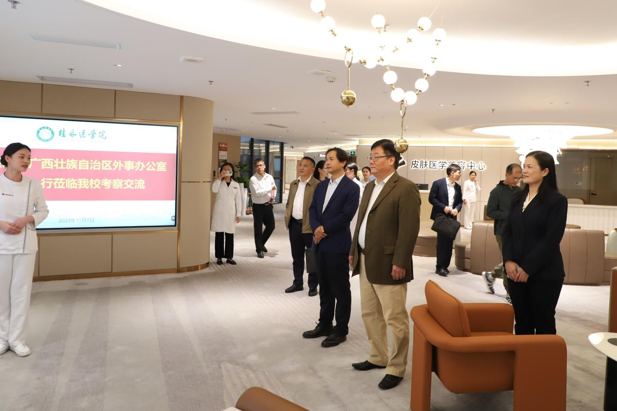 宋海军对我校深化国际化发展提出了两点意见,一是充分利用粤港澳大湾区战略腹地的强大动力,积极融入大湾区发展;二是充分发挥国际医美中心和健康体检中心的作用,面向粤港澳大湾区、“一带一路”沿线国家及非洲国家加强宣传推介,推动医疗服务国际化发展。宋海军表示,自治区外事办公室将全力支持我校国际化办学,并提供必要的指导,助推广西医学教育国际影响力和知名度的提升。