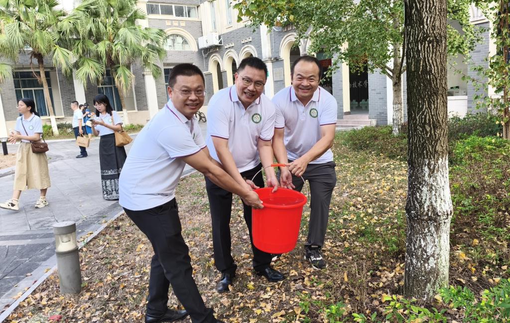 校友为认捐树浇水施肥