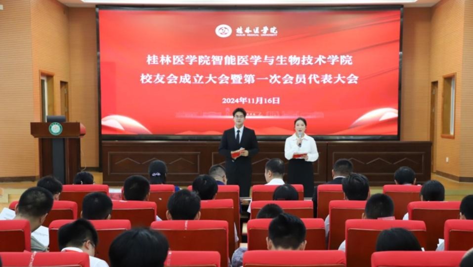 11月16日下午,桂林医学院智能医学与生物技术学院校友会成立大会暨第一次会员代表大会在临桂校区明德楼一楼会议室举行。校党委常委、副院长、桂林医学院校友会常务副会长陈健,校友办,智能医学与生物技术学院历任领导代表、现任领导班子出席会议,历届校友代表、在校师生代表120余人欢聚一堂,共同见证这一重要时刻。
