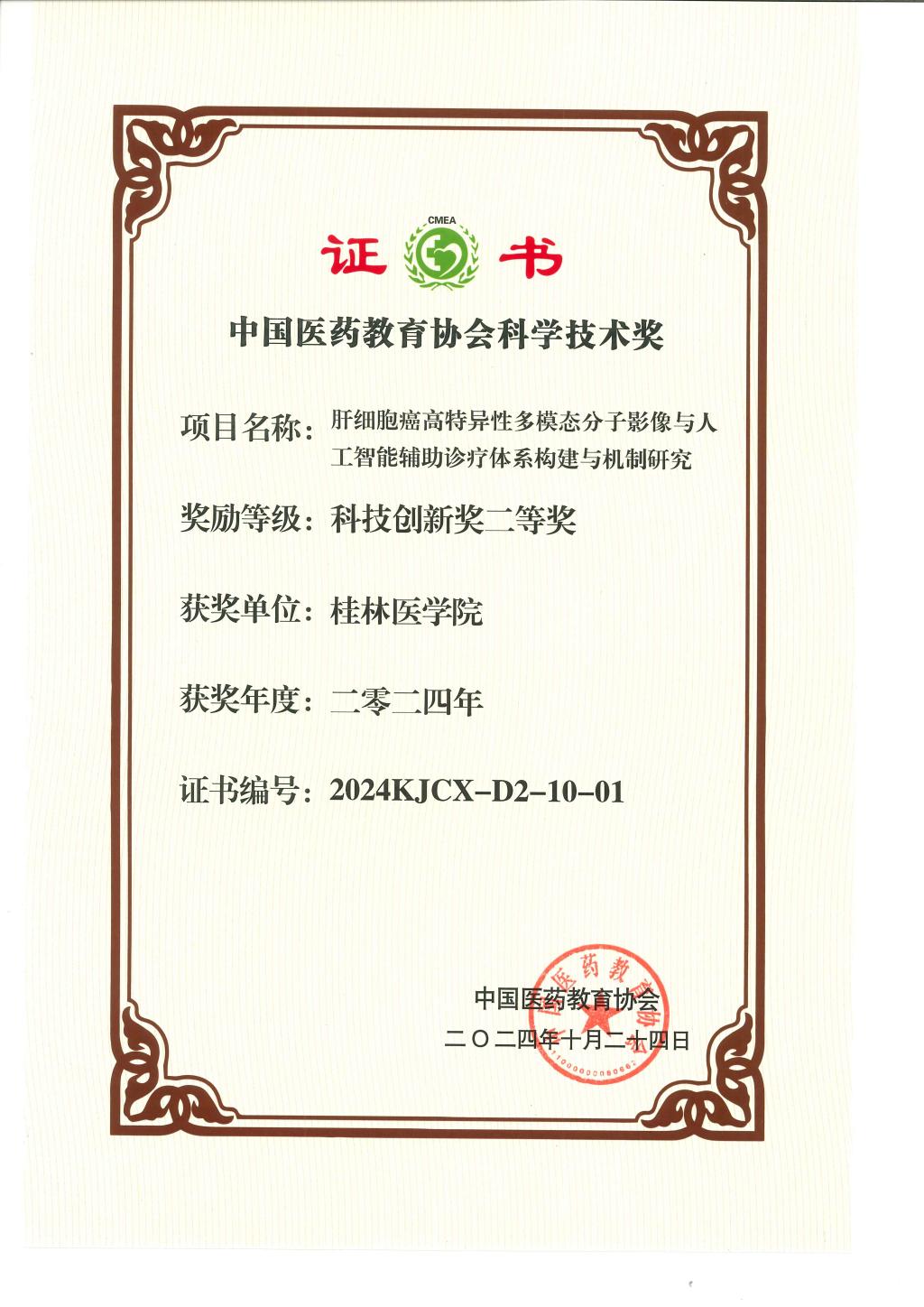 近日,我校魏兵教授、毛景松博士团队的《肝细胞癌特异性多模态分子影像与人工智能辅助诊疗体系的构建与机制研究》项目,荣获中国医药教育协会科学技术创新二等奖,这是我校首次获得此荣誉。
