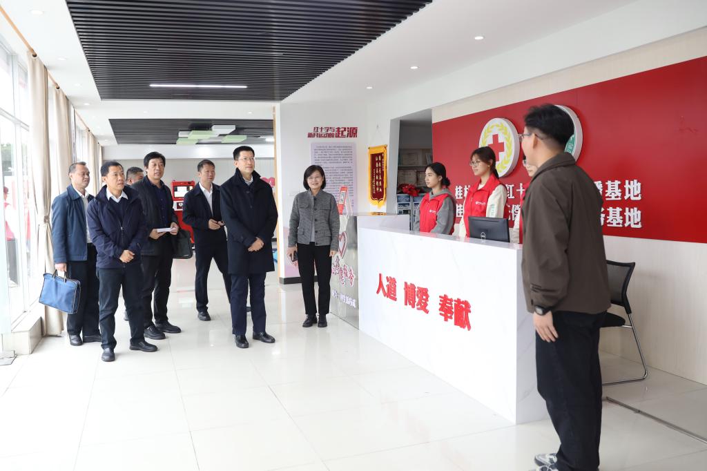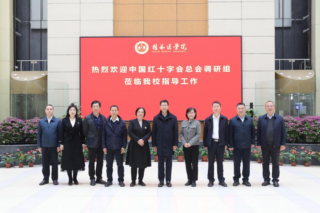 11月25日,中国红十字会副会长梁宇一行来我校开展工作调研。中国红十字会总会联络部副部长马文博,自治区红十字会党组成员、副会长伍丽东及桂林市红十字会相关人员陪同调研。