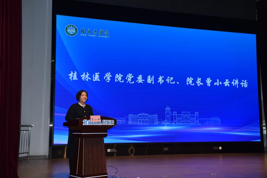 曾小云代表学校对北海校友会成立表示热烈祝贺。她指出,近90年来,数代桂医人艰苦创业、励精图治,用汗水和智慧谱写桂林医学院改革发展华章,近年加快发展步伐,以崭新姿态迈向以“特色鲜明、在国内外有良好声誉的医科大学”为目标的新征程。她对北海校友会寄予希望,一是秉承服务校友、服务学校、服务社会宗旨,建设成为传递母校关怀的纽带、联络校友的中枢、校院交流合作的平台,助力校友成长、成才;二是创新开展形式多样的校友活动,汇聚校友智慧、拓展校友资源、凝聚校友合力,为学校建设添砖加瓦;三是以即将到来的90周年校庆为契机,常回母校看看,为学校发展建言献策,推动校院合作高质量发展。
