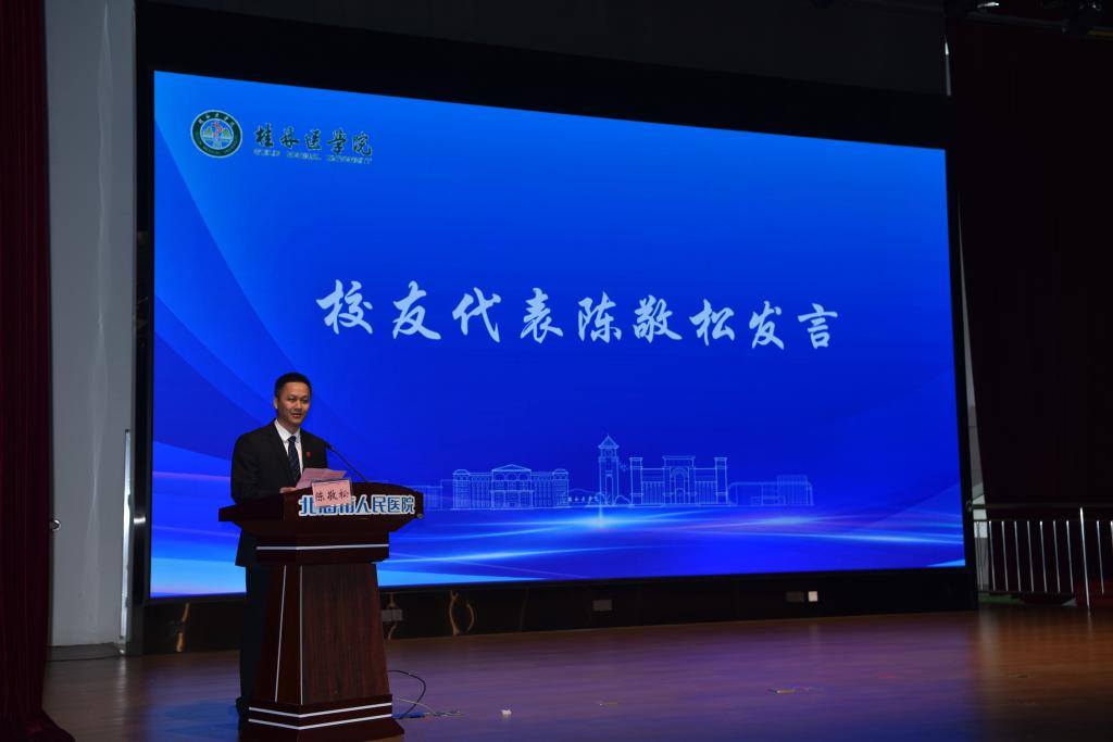 合浦县人民医院副院长陈敬松作为校友代表发言,他深情回顾了在母校的求学岁月,并为母校近年发展和校友在各领域取得的成绩自豪。他表示,校友会的成立将为校友提供更多交流机会,促进校友合作与发展。