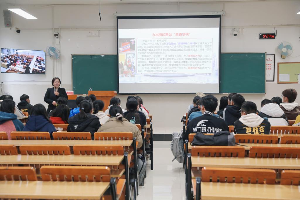曾小云以“加快发展新质生产力”为题,从“什么是新质生产力;为什么要发展新质生产力;怎样发展新质生产力;发展新质生产力的青年担当:医学生如何融入时代浪潮”等四个方面,深刻阐释了新质生产力的科学内涵、发展新质生产力的重大意义、培育发展新质生产力的实践路径和医学生与新质生产力如何实现双向奔赴等重大理论和实践问题。