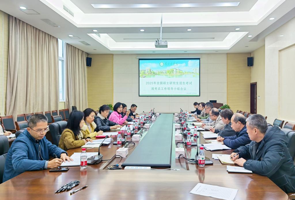 会上,研究生院(处)负责人传达了2025年全国硕士研究生招生考试安全工作视频会议精神和自治区招生考试考务工作会议精神,介绍了我校作为报考点的报名情况和前期准备工作情况,并对报考点工作领导小组下设的十个组的具体工作进行了安排部署。