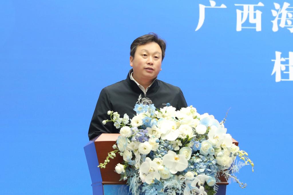 薛明杰在致辞中对广西海洋生物医药研究院的发展充满信心。他表示,广西海洋生物医药研究院依托桂林医学院在生物医学领域的深厚底蕴,联合广西大学在海洋科学、化学工程等学科的优势资源,怀着开放与包容的心态,让更多的智慧和资源在这里交融,共同推动海洋生物医药的创新发展,表达了我们对海洋生物资源的珍视,也体现了我们对社会责任的坚定承诺。励信集团将不遗余力地投入资源与精力,以求实创新的精神、合作共赢的理念、绿色共享的原则,合理整合各方优势,深化产学研合作,推动海洋生物医药技术的突破与成果转化,让更多的科研成果惠及民众。
