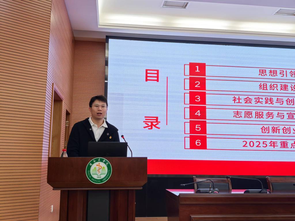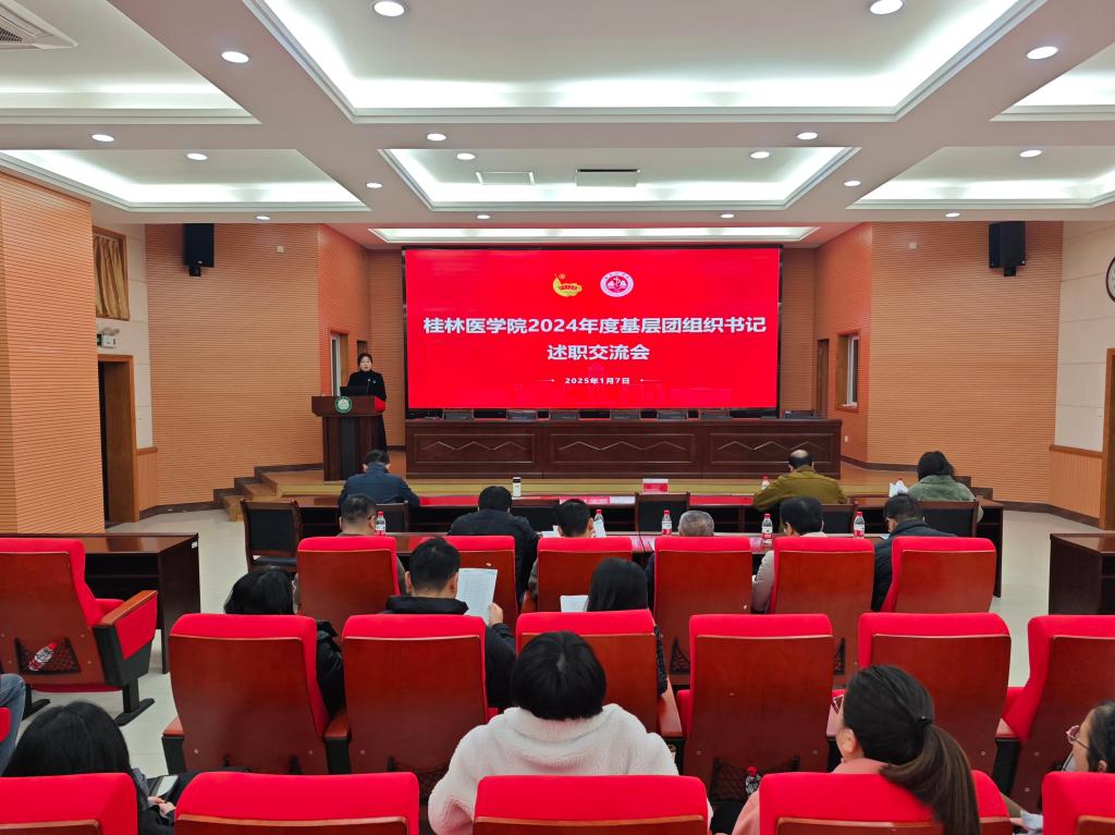 1月7日上午,桂林医学院2024年度基层团组织书记述职交流会在明德楼101会议室举行,学校党委常委、副院长陈健,学生工作部(处)、研究生工作部负责人,各二级学院(系)分管学生工作负责人,两所直属附属医院团委负责人,本专科生、研究生全体专兼职辅导员及校团委全体人员参加会议。