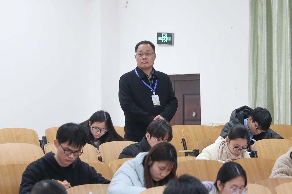 根据学校教学工作安排,2025年1月6日至1月10日,我校2024-2025学年上学期期末考试在东城、乐群、临桂校区,第二附属医院以及4家非直属教学医院进行。学校党委书记马献力,党委常委、副院长李清华分别深入临桂、乐群校区理论考场进行巡视,认真查阅了试卷质量和难度,对题型、题量等问题进行了详细询问,并查看了考场座位排布、监考老师履职等情况。