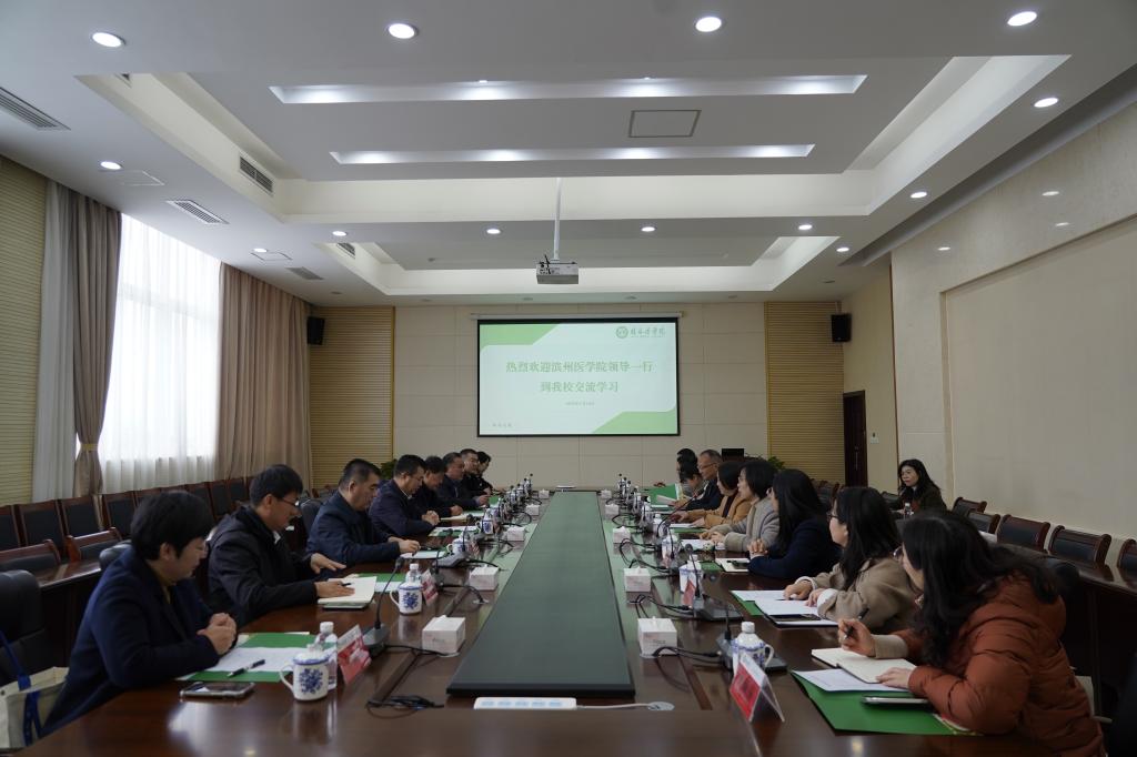 2月24日下午,滨州医学院党委副书记、院长黄飞等一行8人到我校座谈交流。学校党委副书记、院长曾小云出席座谈会并致辞,学校党委常委、副院长陈旭主持座谈会。学校党办院办、发展规划与医院管理处、人事处、研究生院、临床医学院、药学院以及基础医学院等部门相关负责人参加座谈会。