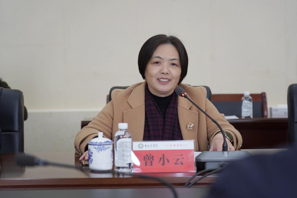 曾小云代表学校对黄飞一行表示热烈欢迎,她简要介绍了学校基本情况、近年办学经验及取得的亮点成绩,表示两校之间友谊深厚,在学校建设发展方面异中有同,同中有异,希望推进更深层次的交流与合作,携手推动两校医学教育事业高质量发展。