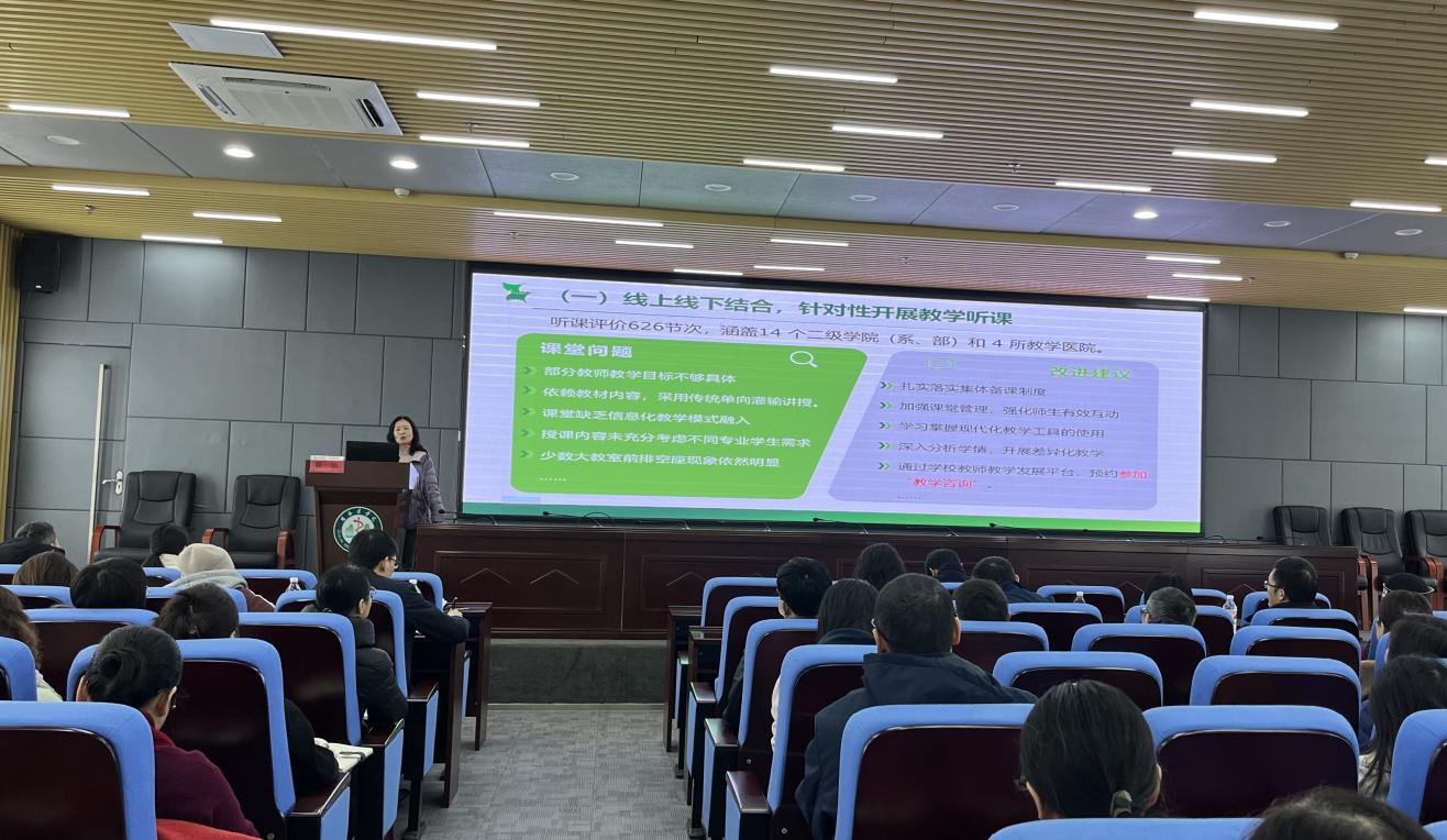 会上,教育评价与教师教学发展中心主任作教学督导工作报告,全面总结了上学期督导工作成效和不足,详细介绍了教师增值评价的实践案例,展示了督导工作在教师教学能力提升中的积极作用。同时,报告重点解读了本学期督导工作方案,从开展“有组织的”督导、“一对一”实施教师增值评价、强化集体备课的跟踪反馈,以及深化多元教学有效性评估等方面,对重点任务和实施路径进行了部署。