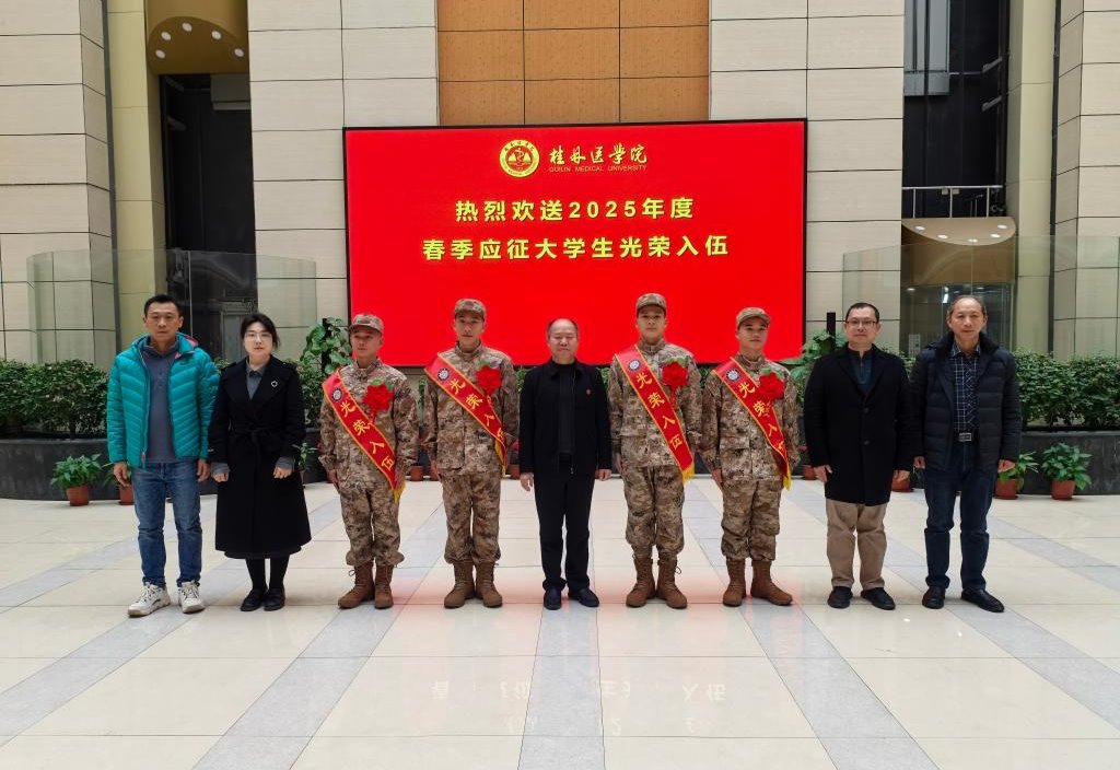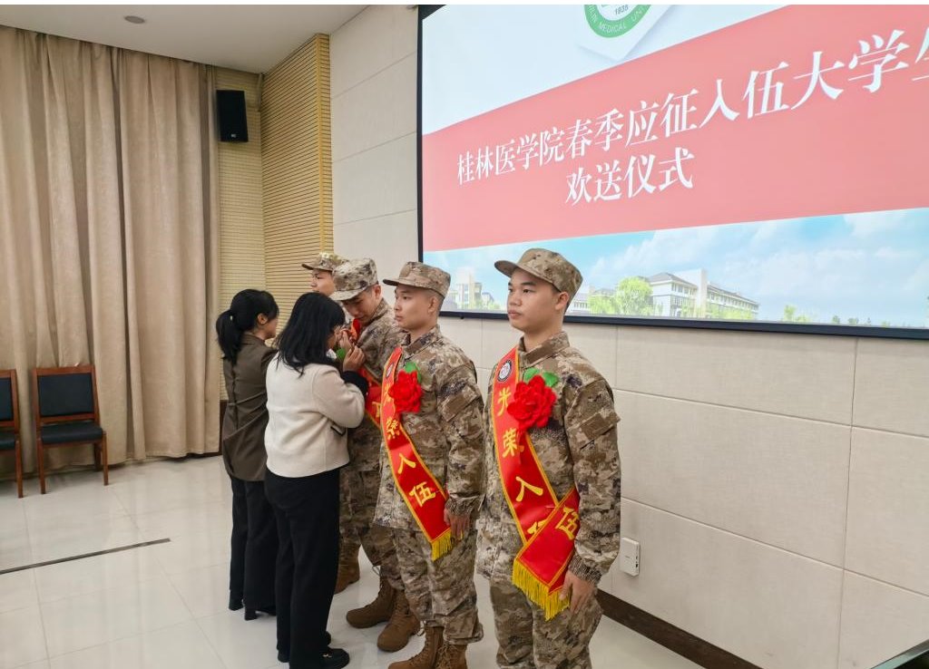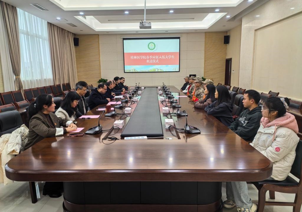 3月14日上午,我校在临桂校区明德楼502会议室召开2025年度春季参军入伍大学生欢送座谈会。学校党委常委、副校长、校征兵工作领导小组副组长覃克强,武装部、学生工作部(处)、校团委等部门主要负责人,入伍大学生所在学院党委副书记及班级辅导员、同学代表、入伍大学生家长代表参加座谈会。会议由学校武装部部长、征兵工作站负责人主持。