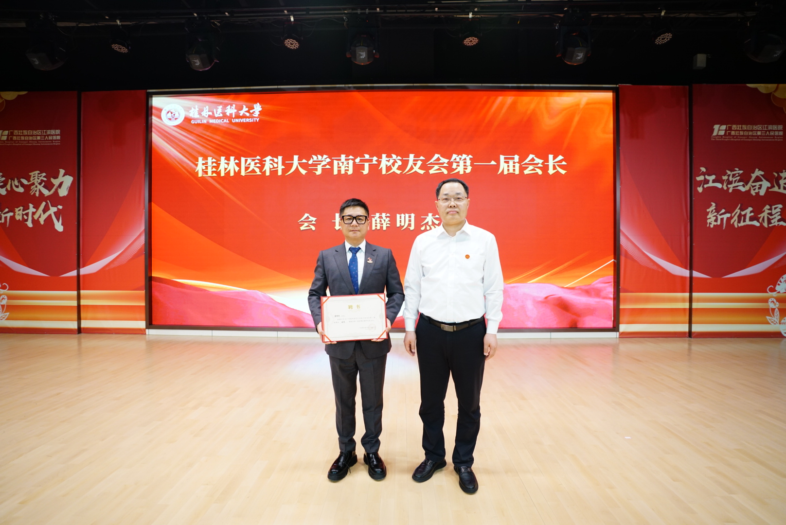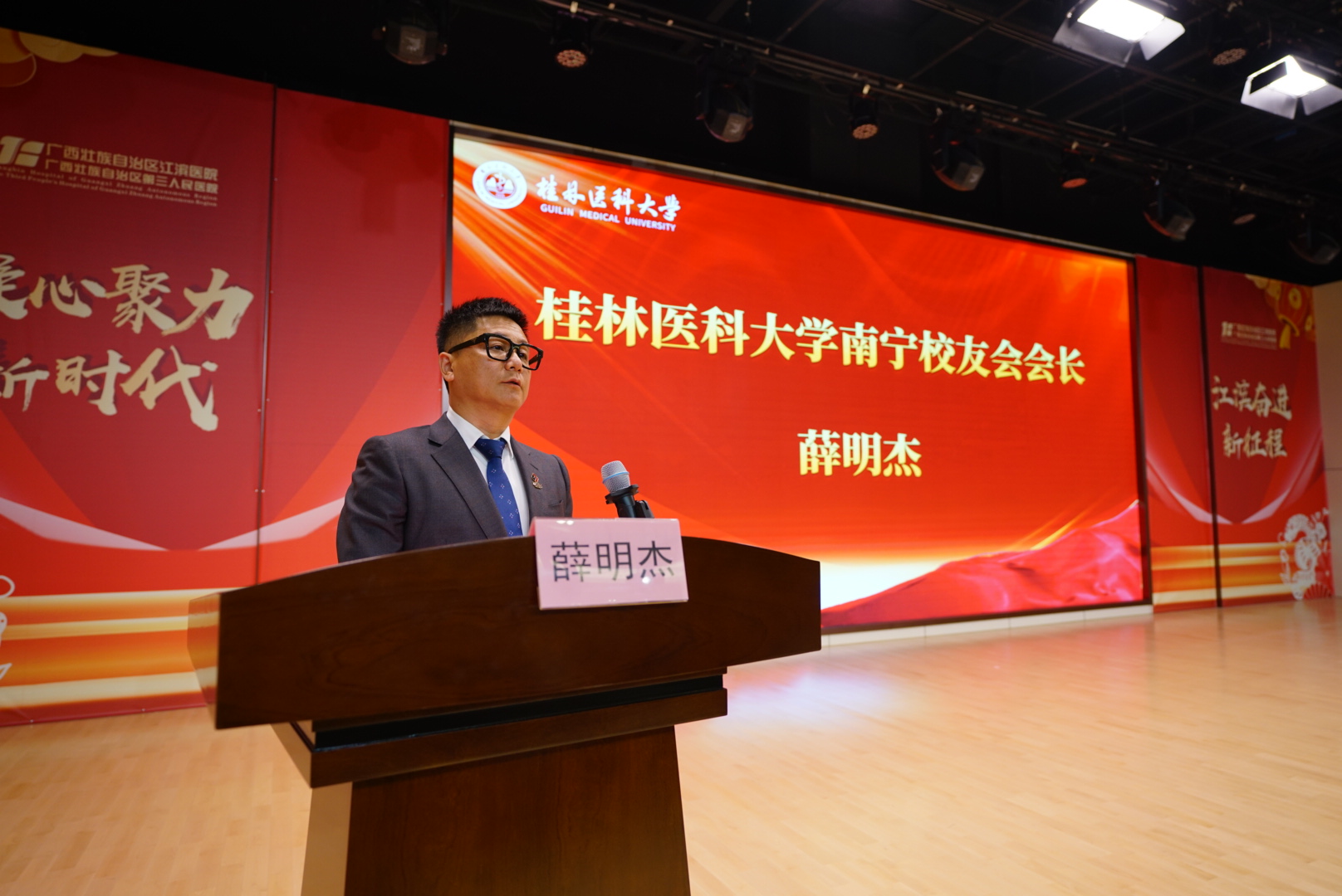 校友代表陈文大在发言中深情回忆了在母校的求学经历,表达了对母校培养的感激之情。当选会长薛明杰表示,将带领校友会积极搭建交流平台,凝聚校友力量,助力母校发展和地方医疗卫生事业进步。