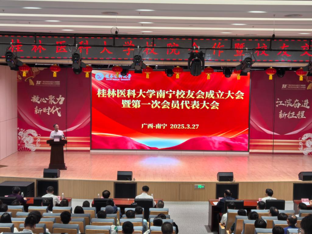 3月27日下午,桂林医科大学南宁校友会成立大会暨第一次会员代表大会在广西壮族自治区江滨医院老年医学中心大楼五楼报告厅举行。桂林医科大学党委书记马献力一行,南宁校友会筹备组成员及200余名校友代表齐聚一堂,共同见证这一重要时刻。