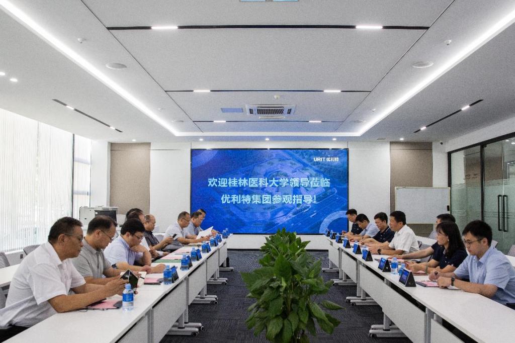 桂林优利特医疗电子有限公司总裁石平对马献力一行的到来表示热烈欢迎,详细介绍了公司的发展历程、产业布局、未来规划及与桂林医科大学的合作情况,并表示公司作为医疗电子领域的国家高新技术企业,将以此次交流为契机,进一步深化与桂林医科大学的合作与交流,加快推动双方战略合作落地见效。