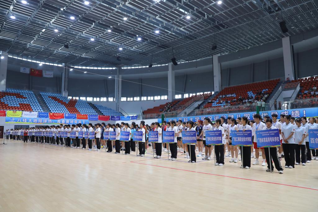 7月10日上午,广西壮族自治区第十四届学生运动会排球项目(大学组)开赛仪式在我校临桂校区体育中心盛大启幕。