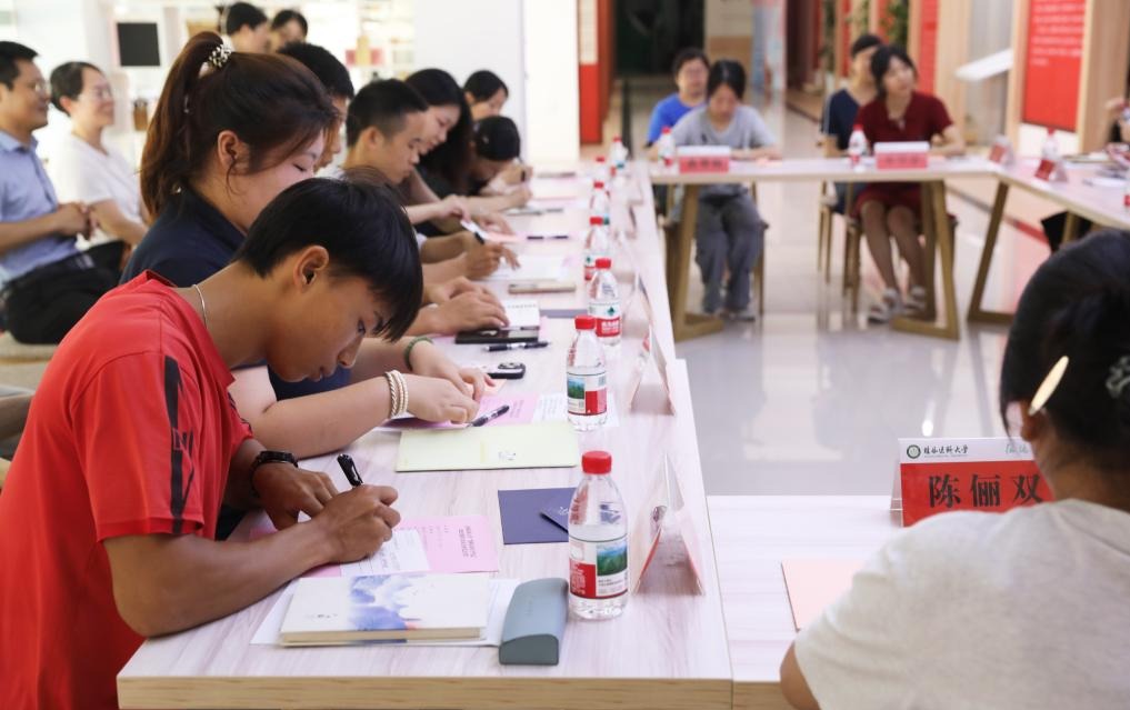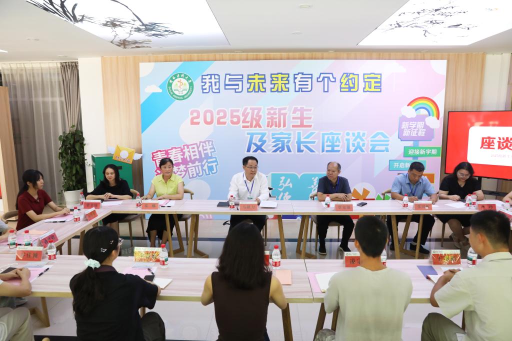 8月27日下午,我校在临桂校区新时代大学生党建文化中心举办“我和未来有个约定”2025级新生及家长代表座谈会。校党委书记马献力、副校长覃克强和相关部门负责人与来自各学院(系)新生及家长代表齐聚一堂,共话大学生活,展望未来成长。座谈会由学生工作部、武装部负责人主持。