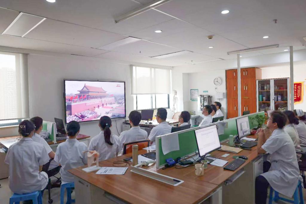 第一附属医院(第一临床医学院)党委书记汪丽燕表示:我们要将观看阅兵式激发的爱国热情和民族自豪感,转化为践行“人民至上、生命至上”的实际行动;要学习参阅官兵听党指挥、纪律严明的忠诚品格,学习他们精益求精、追求卓越的专业精神。聚焦医疗服务提质增效,聚焦学科人才建设,聚焦运营管理创新,不断提升医疗技术和服务水平,努力为人民群众提供更加优质高效的健康服务,为健康中国建设贡献力量!