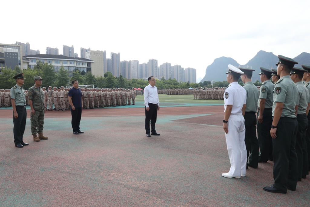 近日,桂林医科大学2025级本科生军事技能训练如火如荼进行。9月3日至4日,学校党委书记马献力深入东城、临桂校区军训现场,亲切慰问带训教官和参训学生。校办、学生工作部、武装部等职能部门负责人及各学院负责人参与慰问。