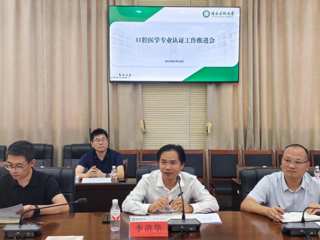 李清华在讲话中强调,口腔医学专业认证是学校本年度教育教学工作的重点任务,不仅是对口腔医学人才培养质量的一次权威检验,更是推动学科内涵式发展、提升核心竞争力的重要契机。他就做好认证准备工作提出三点要求:一是强化责任落实,实行清单化管理,倒排工期、节点推进;二是深化协同配合,建立定期沟通机制,及时破解认证筹备过程中的堵点难点问题;三是坚持标准引领,以认证促改革,为口腔医学专业长远发展夯实基础。
