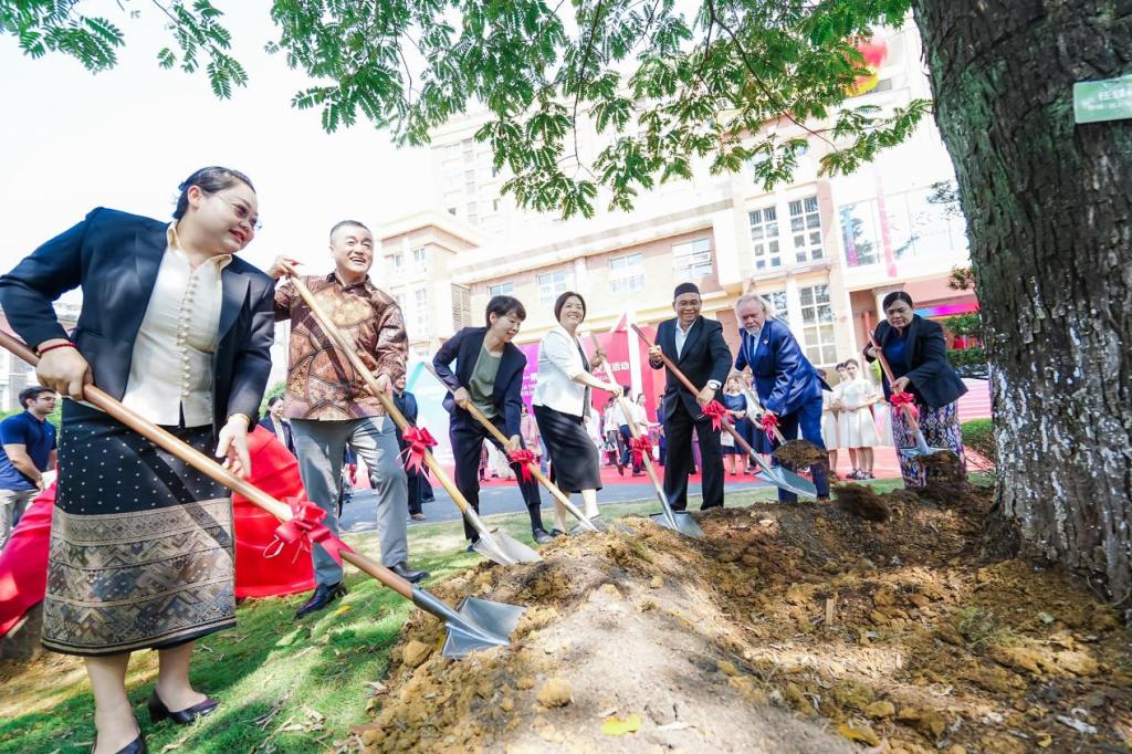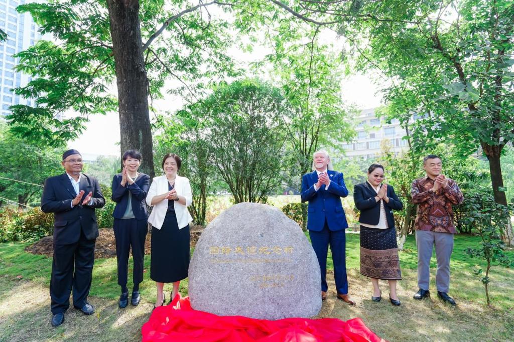 开幕式期间,我校分别与波兰托伦哥白尼大学、日本德岛大学、马来西亚博特拉大学签署了合作协议,进一步拓展了国际合作渠道。随后举行的尼泊尔与越南校友分会授旗仪式,以及中国政府奖学金研究生导师证书颁发活动,凝聚了海外校友力量,彰显了我校在来华留学生培养质量方面取得的突出成效。最后,曾小云与国外高校代表共同为“国际友谊纪念树”培土加固,并为纪念石碑揭幕,寓示着校际合作的深厚根基与广阔前景。