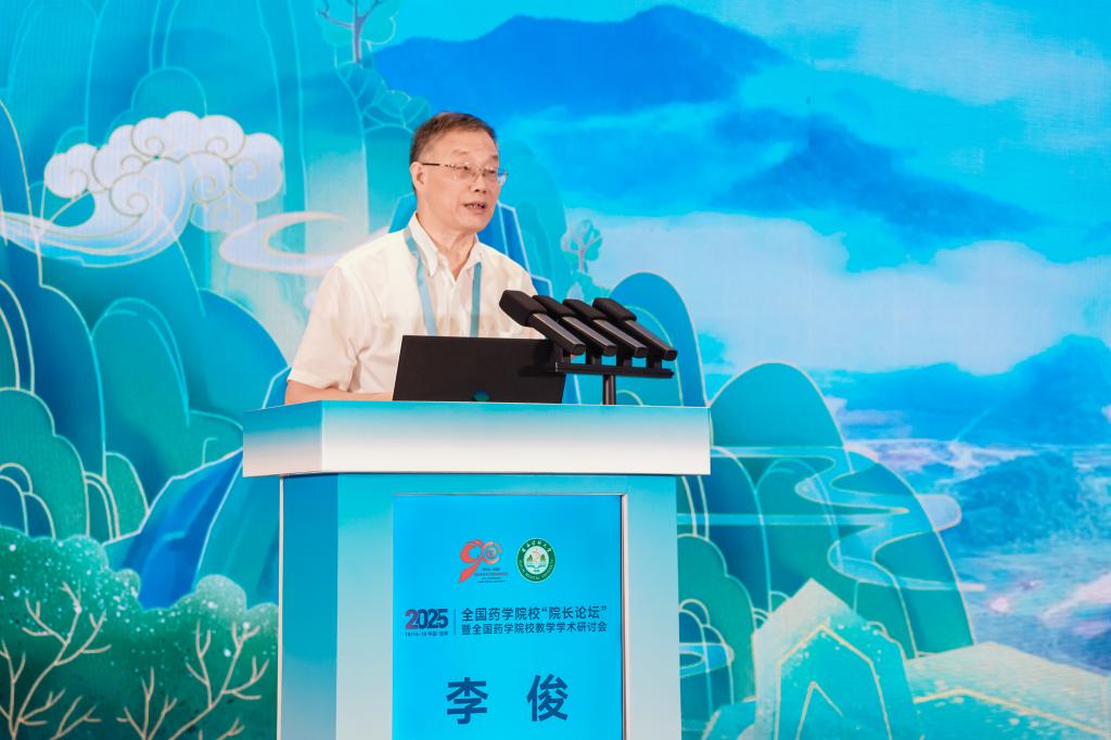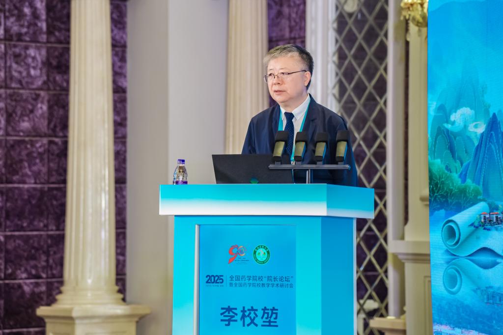 教育部高等学校药学类专业教学指导委员会副主任委员、安徽医科大学原党委书记李俊教授代表教指委致辞。他深刻阐述了在数字化、智能化时代背景下,药学教育所面临的机遇与挑战,提出了推动药学教育高质量发展的关键路径。他希望与会代表能深入交流,凝聚共识,为加快药学教育现代化、服务“健康中国”战略贡献智慧和力量。